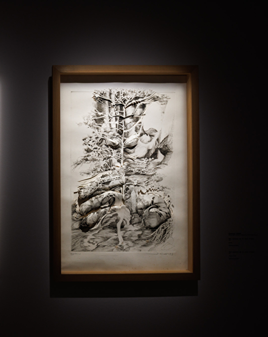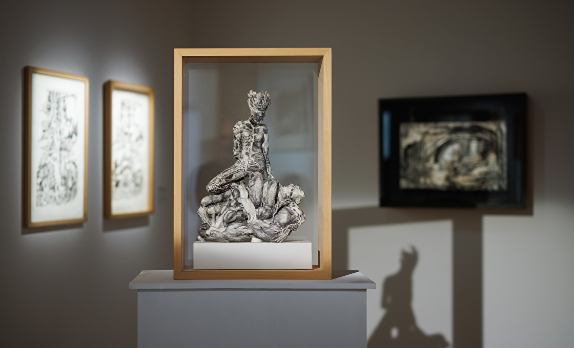 Une seconde salle lui est également dédiée, grâce à des prêts exceptionnels de l’association des amis de l’artiste, du Conseil départemental du Jura et de sa famille jurassienne. Si la majorité des pièces est présentée au deuxième étage du musée, certaines ont été volontairement dispersées dans d’autres espaces, à des points stratégiques du parcours. Cette mise en scène subtile permet de créer des croisements de sens, de tisser des histoires entre les œuvres et de les mettre en résonance avec leur lieu d’exposition.