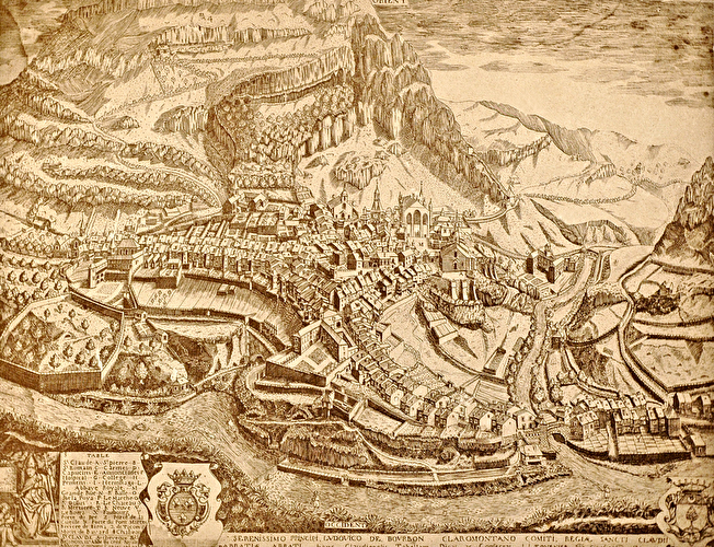 Vue cavalière de la ville de Saint-Claude -1718 Gravure de Jacques Joseph Tournier