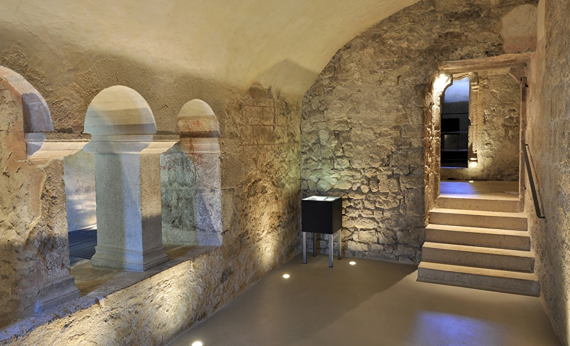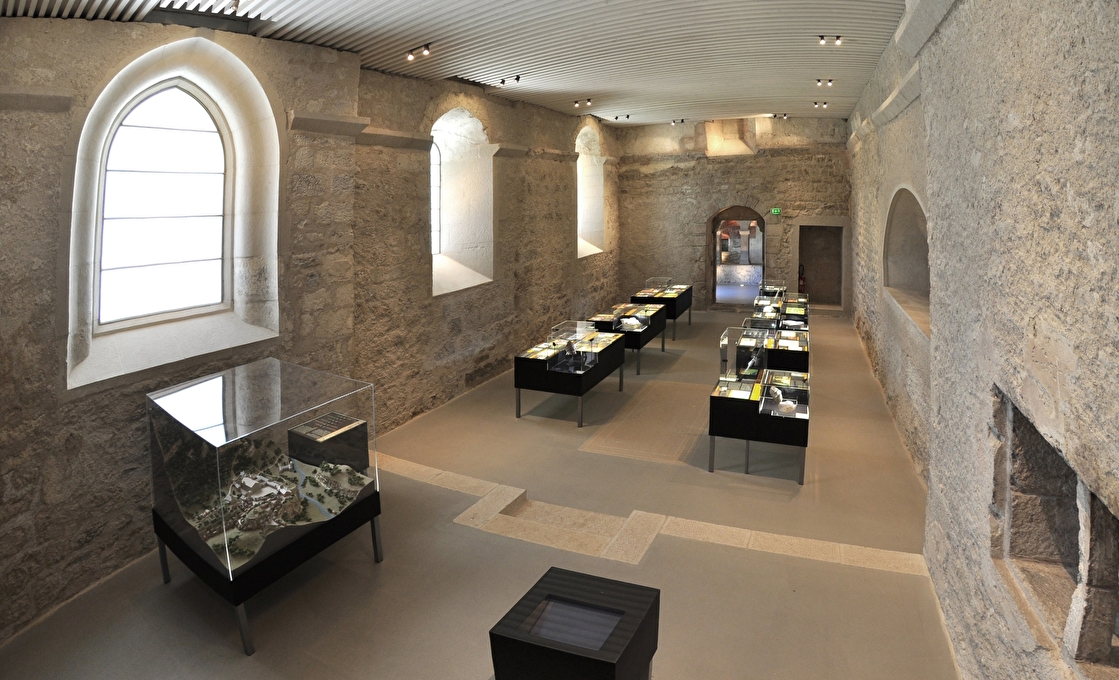 En descendant au sous-sol du musée, on change d’époque. Ici, place à l’archéologie et à l’histoire religieuse. Vous vous trouvez sur le site de l’ancienne abbaye de Saint-Claude, fondée au IXe siècle, dont les vestiges sont aujourd’hui mis en valeur dans un espace entièrement restauré. La visite vous plonge au cœur des fondations de ce lieu emblématique.